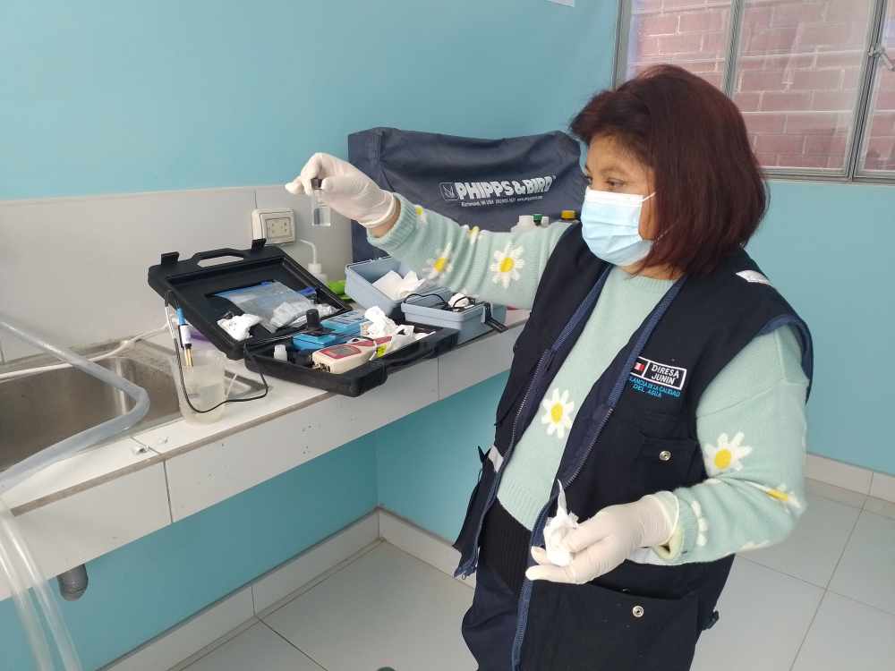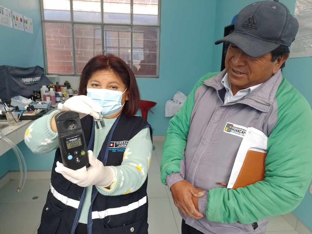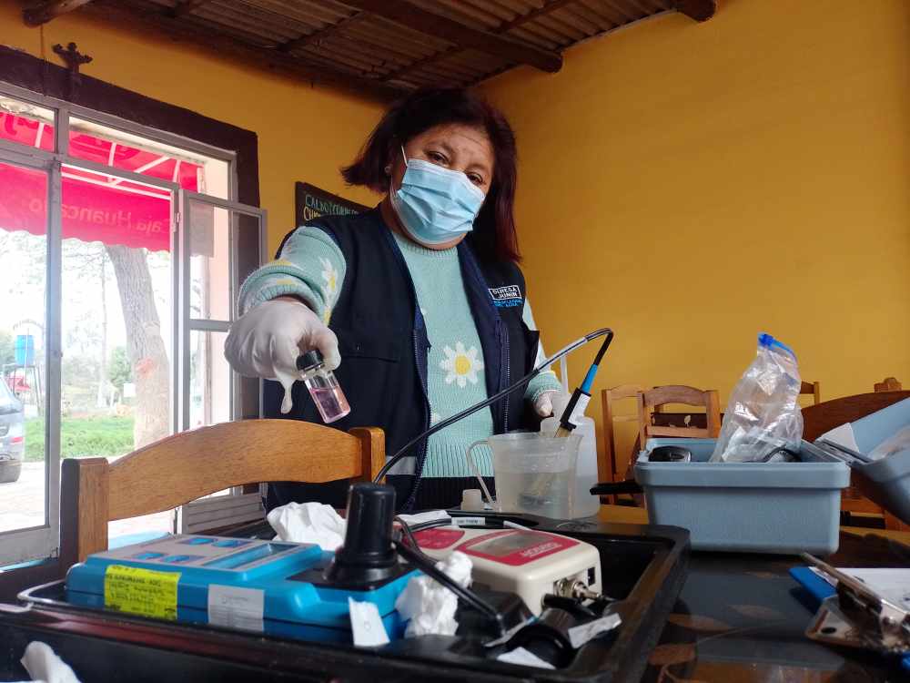 Durante la intervención, también se realizó el monitoreo de la calidad del agua que se viene distribuyendo a la población. “En salida de planta, reservorio y red hemos encontrado que los parámetros de campo como turbiedad, cloro, PH, conductividad y temperatura del agua se encuentran dentro de los parámetros permisibles, de acuerdo al DS 031-2010-SA, lo cual es conforme”, explicó Noemí Morayda García, técnico sanitario de Salud Ambiental de Diresa Junín.